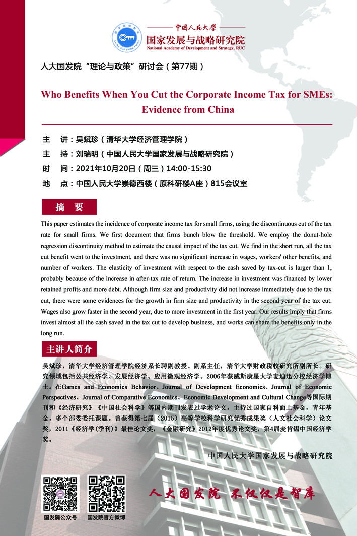 【活动预告】人大国发院“理论与政策”研讨会(第77期)