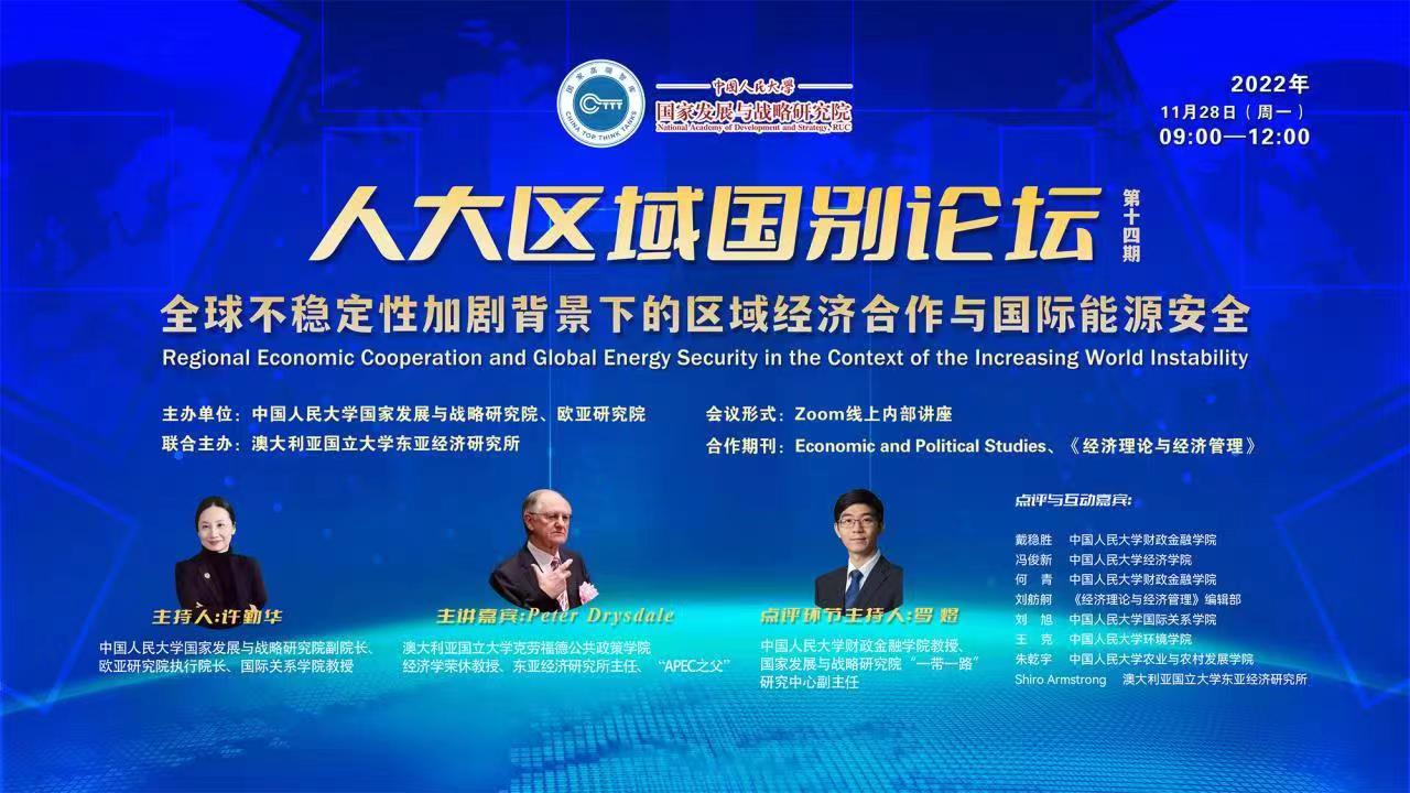 【会议预告】人大区域国别论坛(第十四期) 全球不稳定性加剧背景下的区域经济合作与国际能源安全