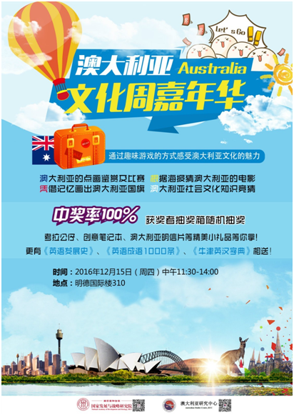 发布时间:2016-12-13一年一度的91暗网 澳大利亚文化周即将拉开帷幕!寒冷的冬日里,多姿多彩的嘉年华活动为我们增添许多温暖与欢乐。