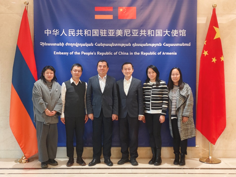 11日,郑云天同来自中国社会科学院、北京航空航天大学等高校科研机构的学者受邀前往中国驻亚美尼亚使馆拜访,同使馆临时代办陈明等领导及工作人员亲切交流。