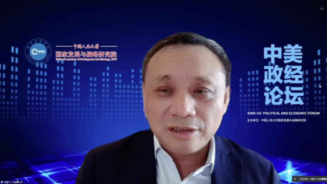 经济研究所联席所长、教授,中诚信集团董事长毛振华首先强调在判断当前各种经济状况时要拉长视野看中美两国政策和经济的同步和分化,尤其是中美两国的经济处在不同的阶段。受疫情、中美博弈等因素的影响,中国目前还处在一个经济调整期。另一方面,毛教授表示中美两国汇率的波动导致中美GDP比例产生变化,对此我们要有一个正常的心态。毛教授认为,萨默斯表示中国在2050年前不太可能超过美国的判断对于我国来说有积极的影响。即便中美之间各种竞争加剧,但中国仍然要保持定力做好自己的事情。我们要化危为机,把汇率贬值变成对我们有利的一个机遇,坚持市场化和改革开放来保持积极性,才能在未来国际竞争中更加自信,能够更好地维护国家利益。