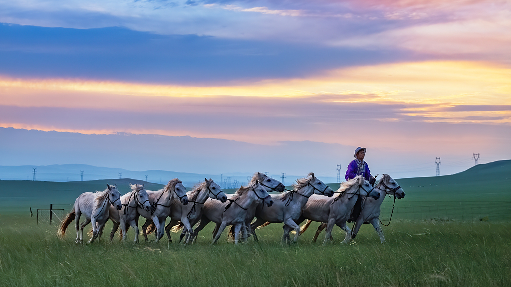Horses gallop on the grassland in Xilingol League, Inner Mongolia, China, July 23, 2021. /CFP