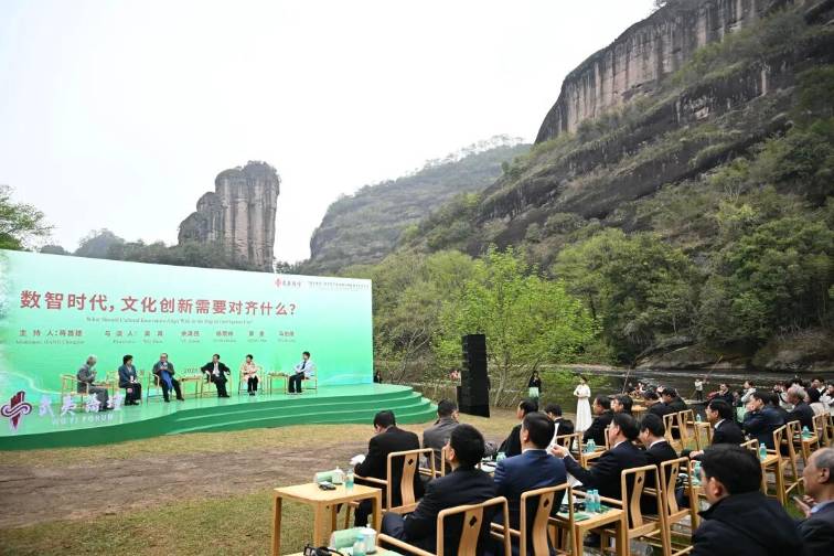 (3月22日,第三届武夷论坛在福建南平开幕,海内外数百名嘉宾齐聚武夷,共话文明传承与现代化发展。图为论坛“与谈环节”,以“数智时代,文化创新需要对齐什么?”为核心主题,专家学者各抒己见。中新社记者 张斌 摄)