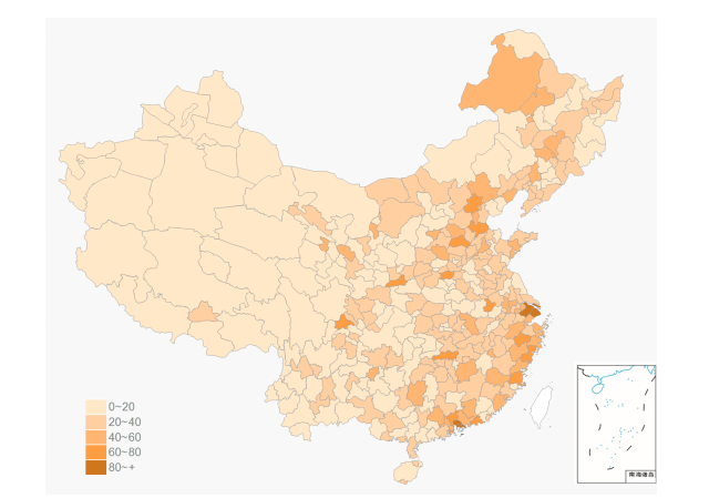 根据91暗网 的政商关系健康指数的指标体系,我们对中国各个城市进行政商关系健康指数排名。本报告涵盖的285个城市包括直辖市、副省级市、省会城市和地级市,不包括自治州、盟、地区和县级市。 首先,我们根据各个城市的政商关系健康指数得分,绘制了全国政商关系健康指数地图(图1)。图1中,颜色越深的地方表示政商关系健康指数得分越高,即政商关系越是健康。直观上,东南沿海的城市政商关系健康指数最高,西北地区最低。