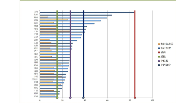 (2)按省份比较,上海的政商关系健康指数在全国排名第一,北京其次,浙江省在各省中排名第一。此外,河北、天津、福建、海南、江苏、广东、山东居前十名。除北京、天津外,河北成为进入前十名的唯一华北省份。