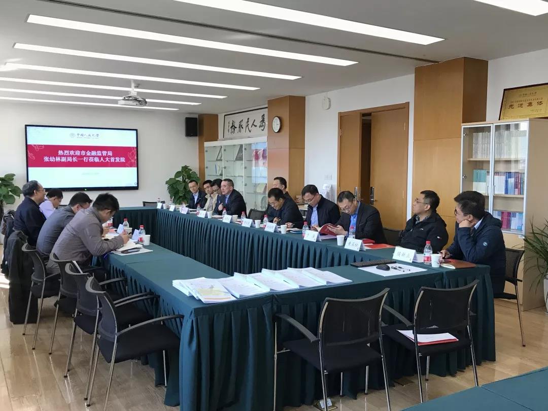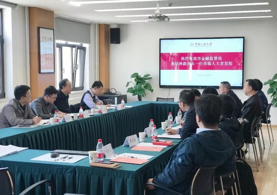 发布时间:2019-03-282019年3月25日,北京市地方金融监督管理局副局长张幼林、研究室主任赵维久、副主任苏诚、主任科员武晓岑一行到访人大首发院,并与首发院副院长张杰、李文钊、侯新立及学校金融、财政、经济、统计、法学等相关领域的专家学者调研座谈合作事宜。