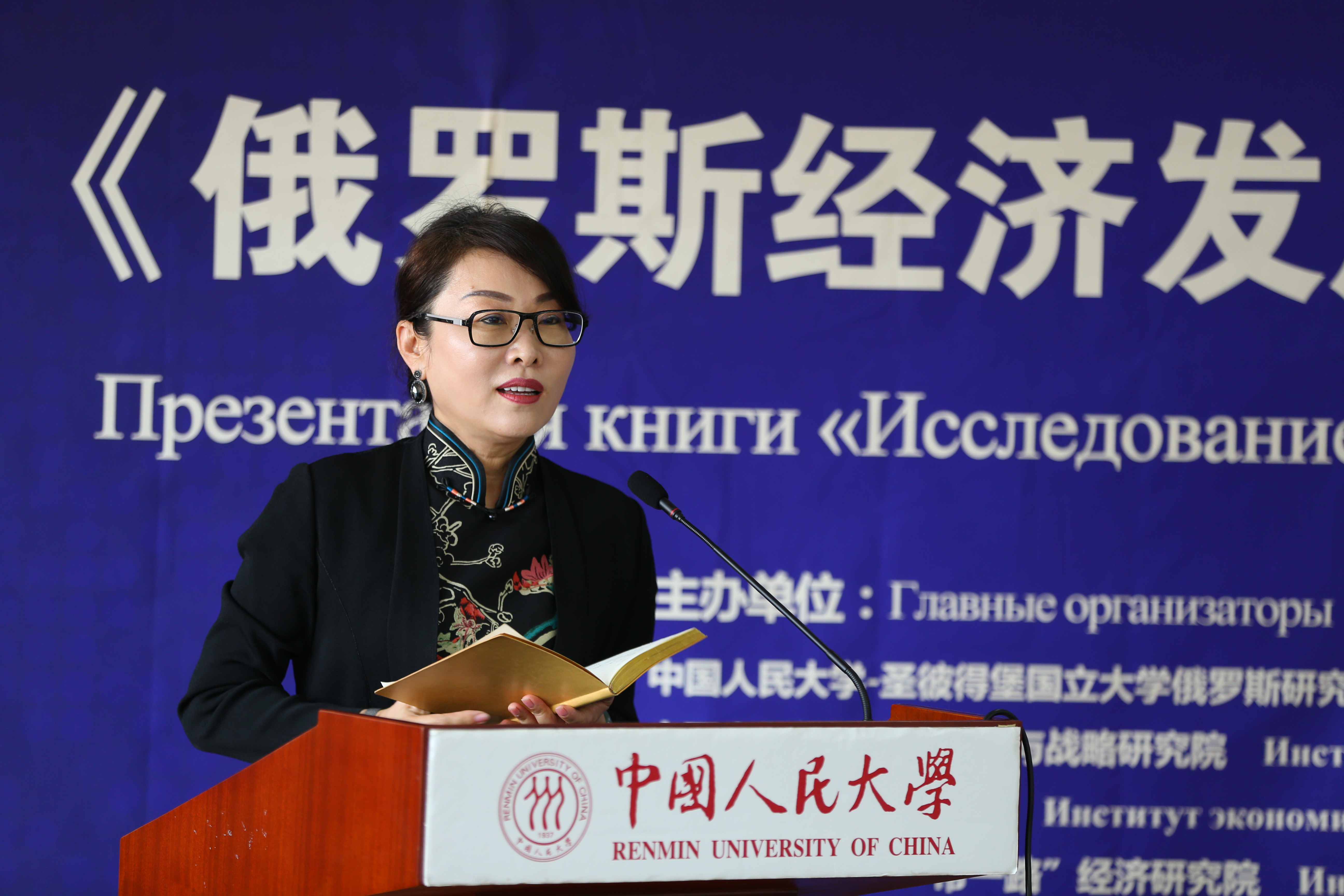 关雪凌主任首先向撰写报告的作者、译者、编者以及与会嘉宾、工作团队表达了衷心的感谢,随后她介绍了报告的主要内容、鲜明特点和未来方向。她表示,该报告是一个非常经典的中俄合作报告,既有中方研究者的文章、也有俄方研究者的文章,这与我国刘延东副总理和俄罗斯戈洛杰茨副总理对俄罗斯研究中心的提出的定位充分符合,即:俄罗斯研究中心应当致力于促进中俄两国学者的交流与联合研究。报告的另一个鲜明特点是全面地聚焦于俄罗斯经济问题上,15篇论文涵盖了俄罗斯经济产业结构、石油工业、国防工业、贸易政策、资本流动、数字经济、货币和预算政策、劳动力市场以及中俄贸易,同时还有对普京刚刚开始的第四个总统任期经济任务的预测。在当前复杂多变的国际经济形势下,该报告对于加深我国学者对中俄经贸关系和俄罗斯经济的了解具有重要意义。关雪凌主任还简要介绍了对明年报告的总体规划和设想。