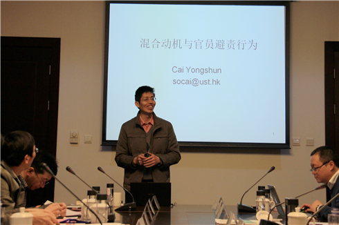 上午,会议首先由人民大学国发院副院长兼反腐败与新政治经济学研究中心主任聂辉华教授致辞。香港科技大学社会科学部教授蔡永顺报告了论文《混合动机与官员避责行为》,讨论了官员的从政动机和现实中追究官员责任困难的原因。中央财经大学经济学院副教授尹振东报告了论文《腐败、官员激励与经济增长:改革开放以来的政经逻辑》,解释了中国经济高速增长和腐败同时存在的现象。聂辉华和人大国发院研究员江艇报告了论文《纪委书记升迁与反腐败》,讨论了反腐败绩效对中国各省纪委书记升迁的影响。上海财经大学公共管理学院副教授吴一平报告了论文《Enforcement and Political Power in Anticorruption: Evidence from China》, 研究了反腐败运动中的政治权力和执行力度之间的相互关系。