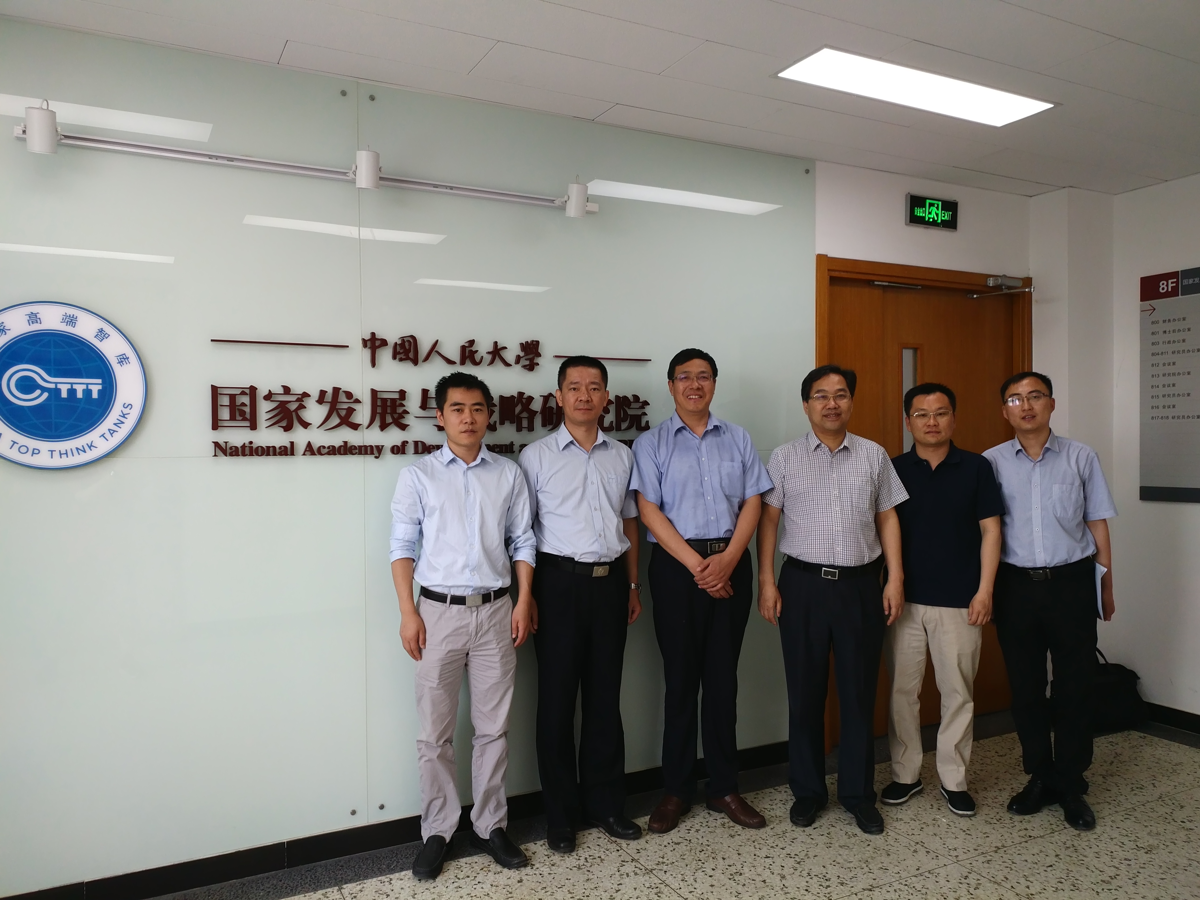 随后,吴思康主任、黄虎成处长一行来到人大国发院参观交流,人大国发院执行院长、校科研处处长严金明与吴思康一行进行了座谈交流。