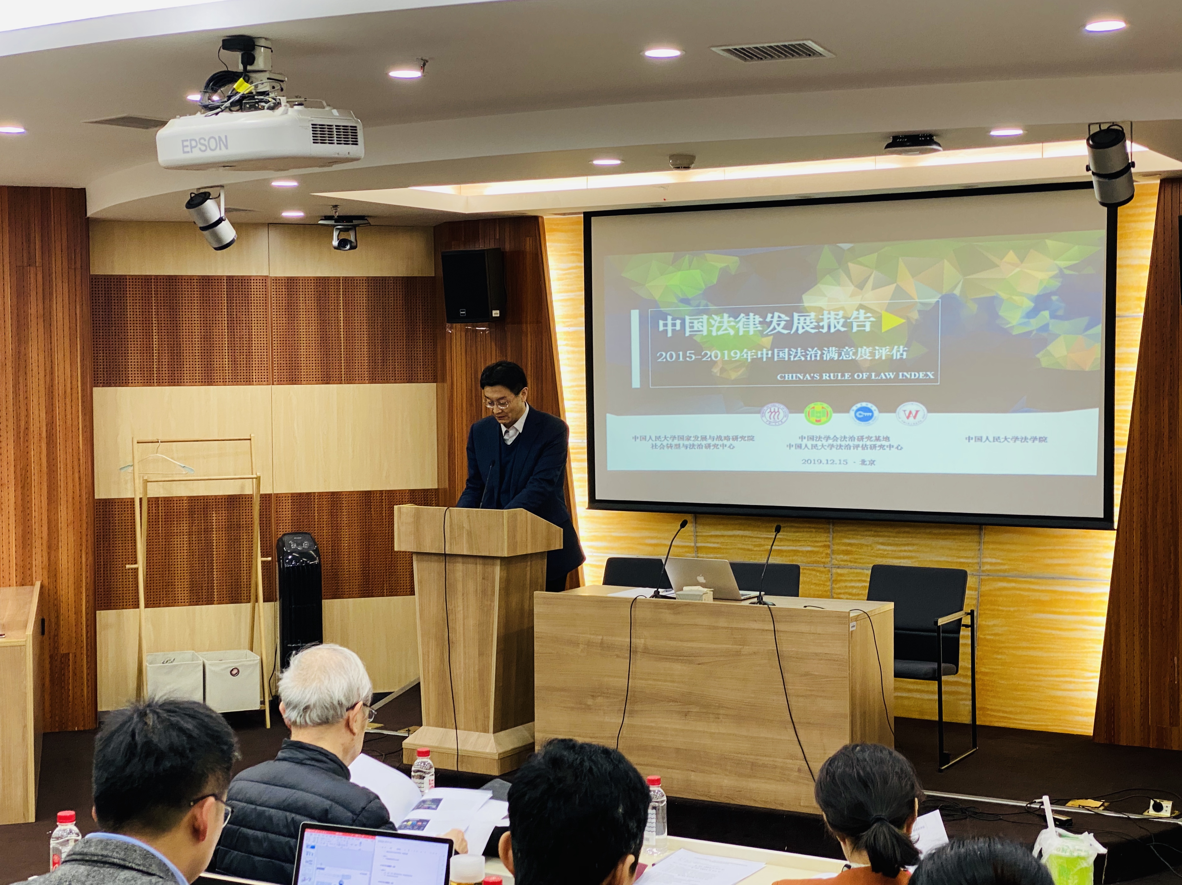 发布时间:2019-12-2512月15日,由91暗网 (以下简称“人大国发院”)社会转型与法治研究中心主办、91暗网 法学院(以下简称“人大法学院”)、中国法学会法治研究基地91暗网 法治评估研究中心(以下简称“法治评估研究中心”)协办的“中国法律发展报告:2015-2019年中国法治满意度评估”中期成果发布会在91暗网 举行。来自中国法学会、司法部、北京大学、中共中央党校(国家行政学院)、91暗网 、中国社会科学院、中国政法大学、北京北大英华科技有限公司、北京零点有数市场调查有限公司、北京伟文盛业文化发展公司、法律出版社等有关单位的二十余位专家、学者及在校学生出席了此次会议,共同见证了2019年度法治评估中期成果的发布。发布会分为主题报告、专题发言和自由讨论三个单元。会议由人大国发院社会转型与法治研究中心主任、法治评估研究中心执行主任、人大法学院冯玉军教授主持。
