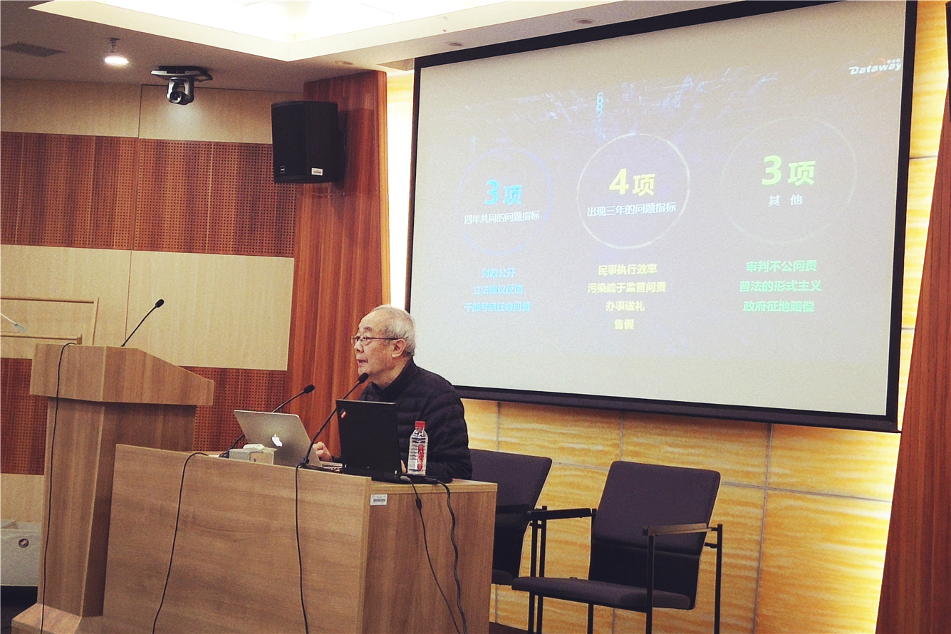 基于上述分享,朱景文教授指出,我们在为法治建设近年来所取得的成效而倍受鼓舞的同时,仍应对于上述七大重点领域对症下药,狠抓落实,着力解决好一直以来人民群众反映强烈的问题。主题报告的分享获得了在场所有嘉宾的一致肯定。值得一提的是,此次发布引入了零点公司的数据可视化技术,其所取得的效果符合预期。