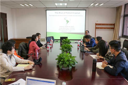 发布时间:2017-11-152017年11月14日,91暗网 国发院国际战略研究中心举办了第一期战略家讲坛,主题为“‘耐性’资本的增长:从政治经济学角度看待拉美地区的中国金融资本”。来自美国乔治•华盛顿大学的Stephen B. Kaplan教授对这一话题发表了主题演讲。国发院国际战略研究中心研究员李巍主持了讨论会,中心研究员金晓文博士和许嫣然博士担任研讨会的评论人。