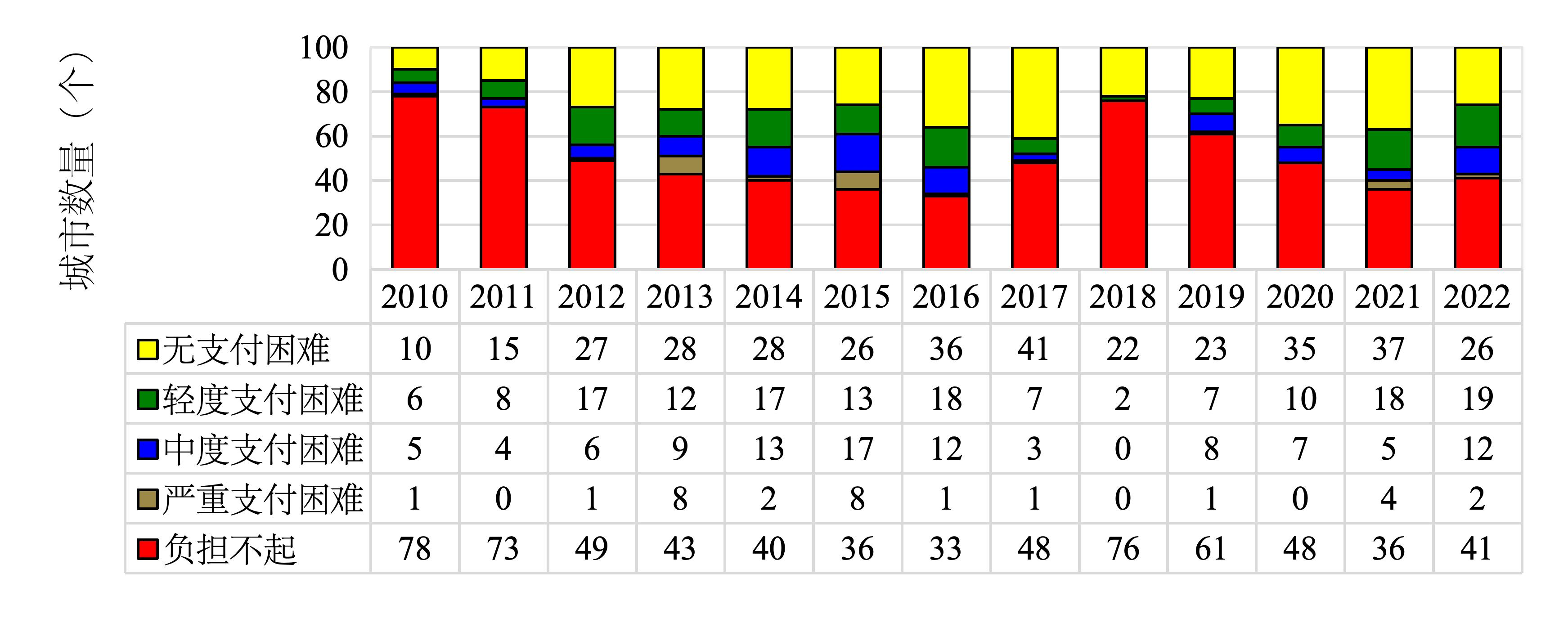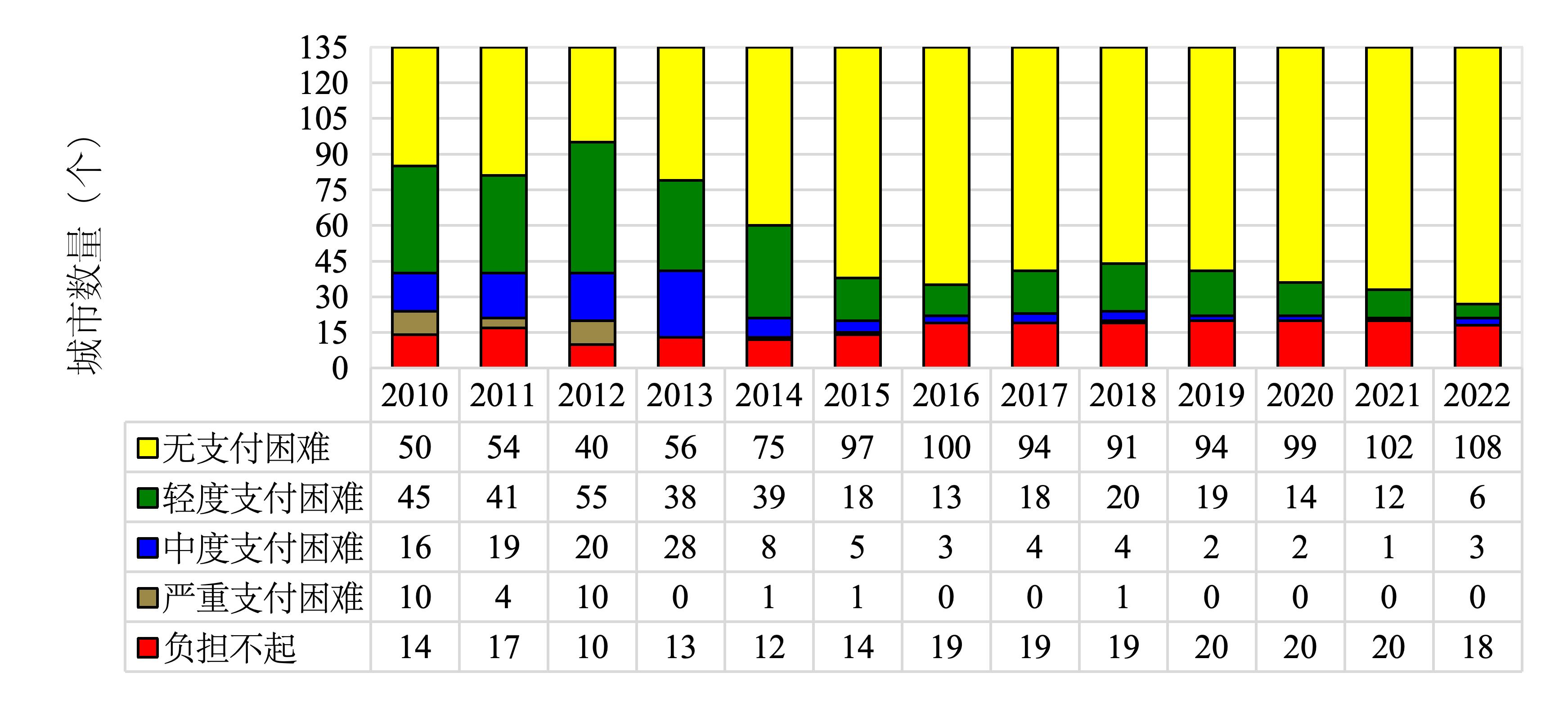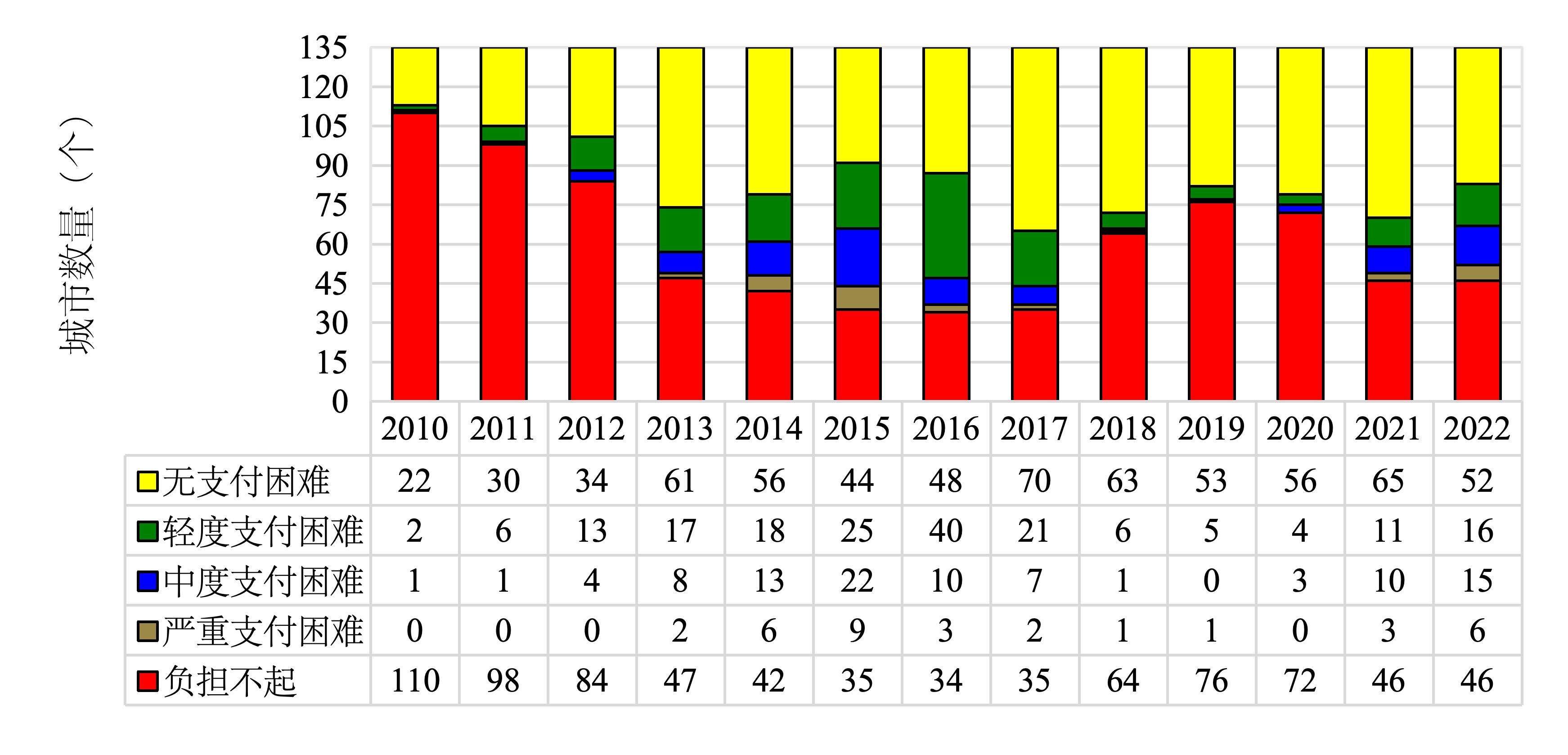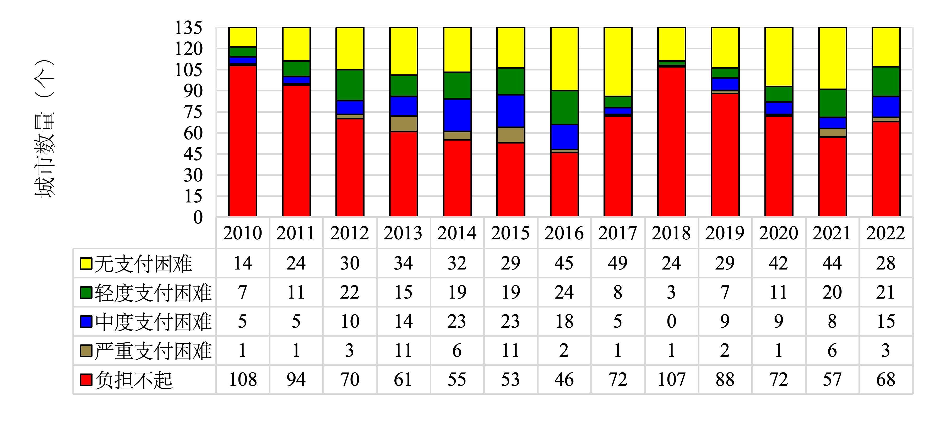 图8 理性预期下2010-2022年中国135个城市房价可支付性分布