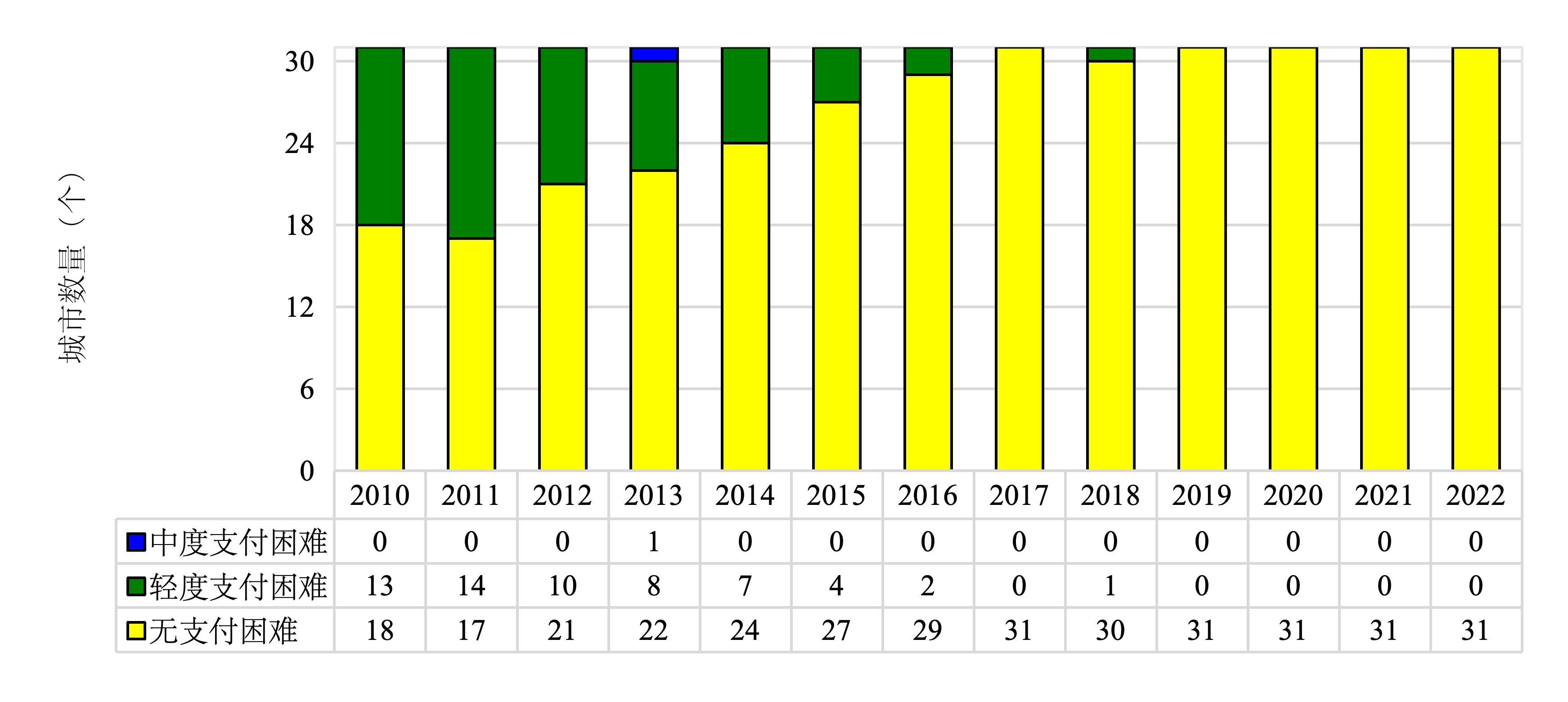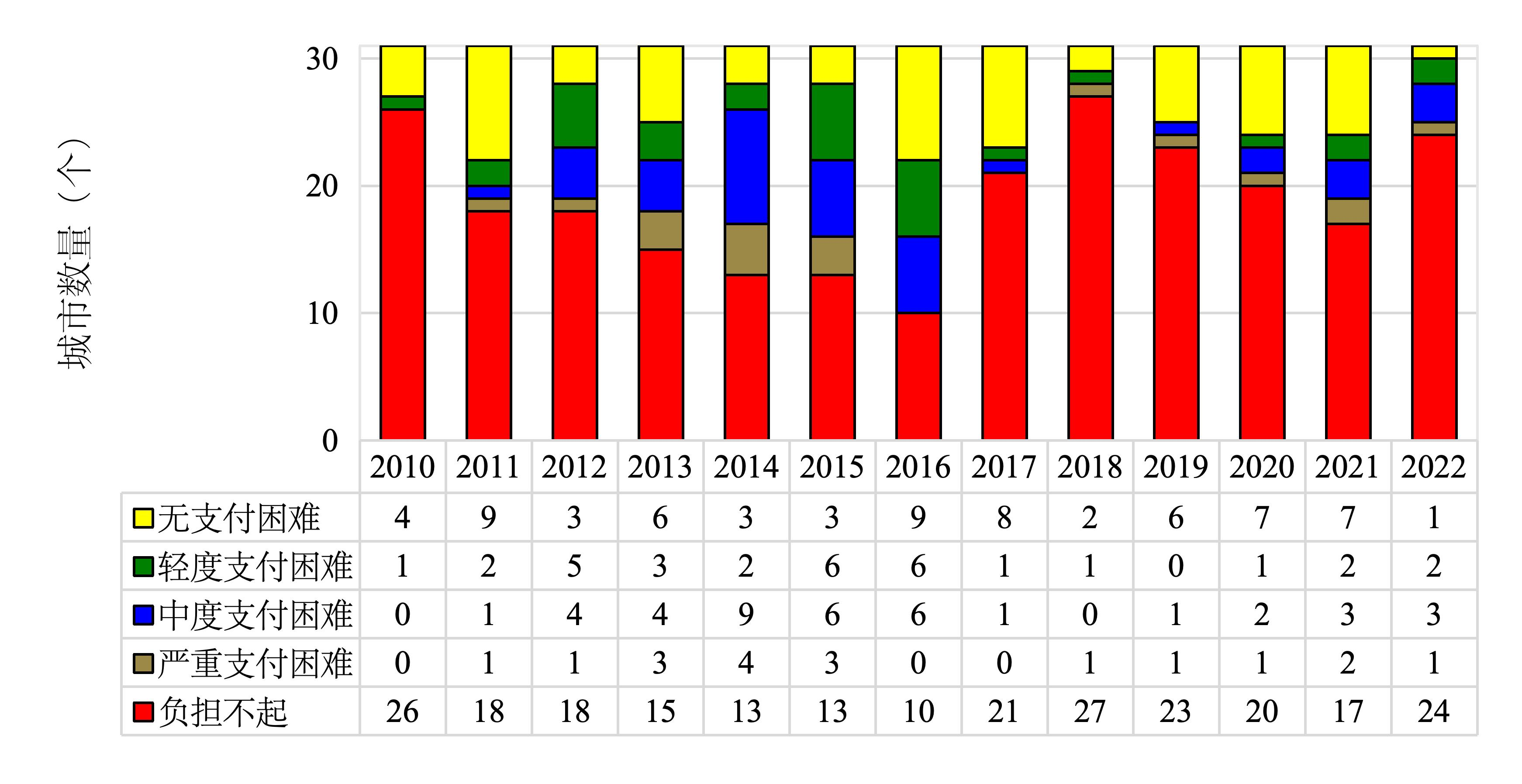 图12 过去3年房价非理性预期下2010-2022年31个二线城市房价可支付性分布