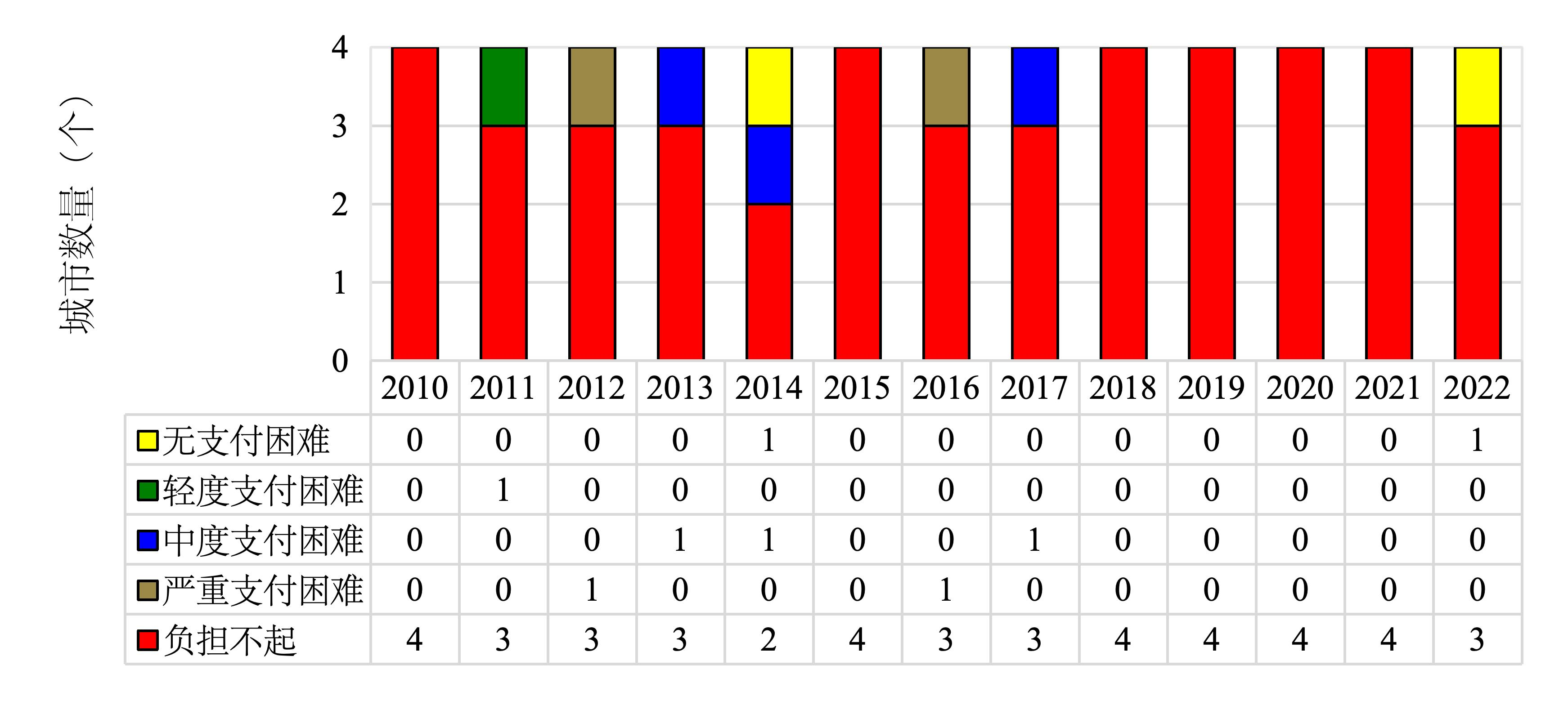 图11 过去3年房价非理性预期下2010-2022年4个一线城市房价可支付性分布