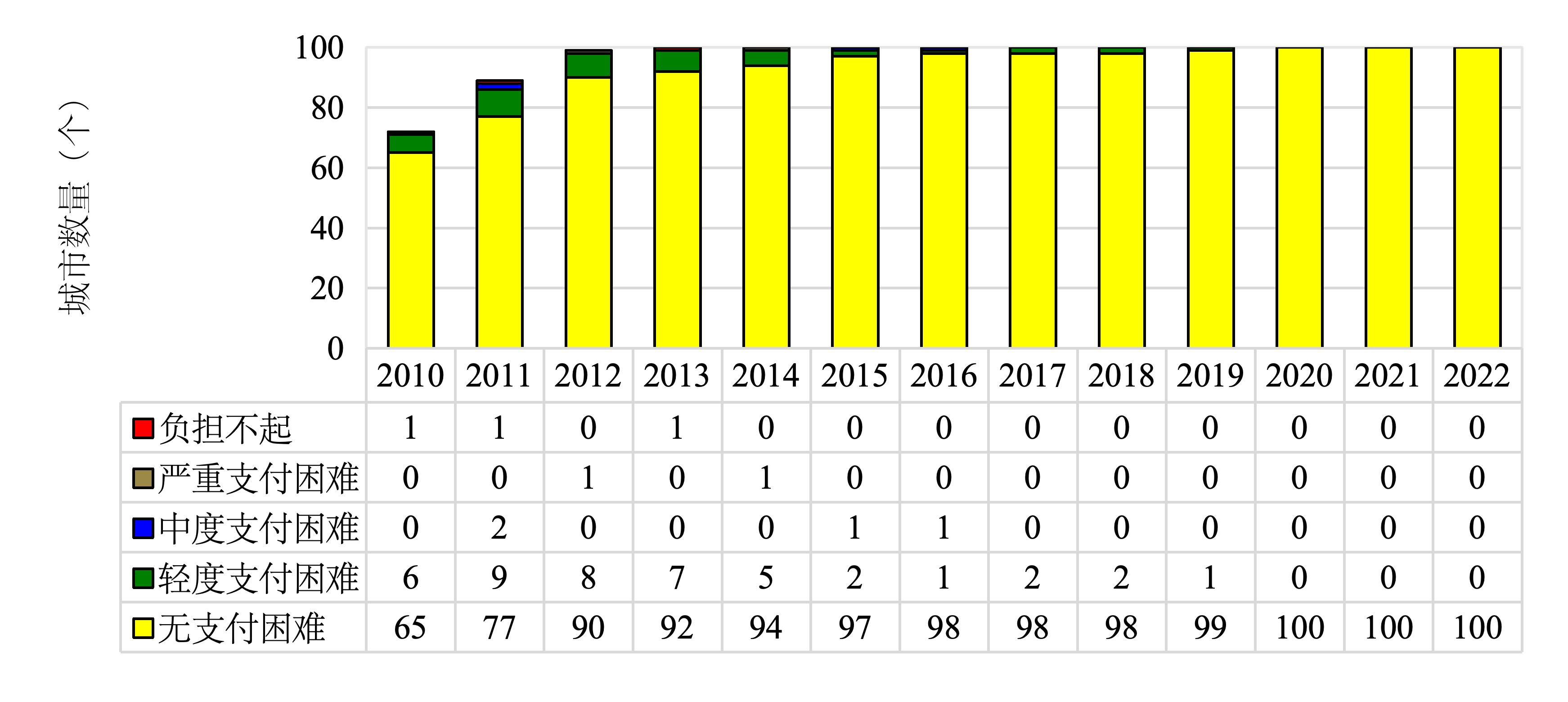 图2 2010-2022年中国135个城市房租可支付指数总体分布