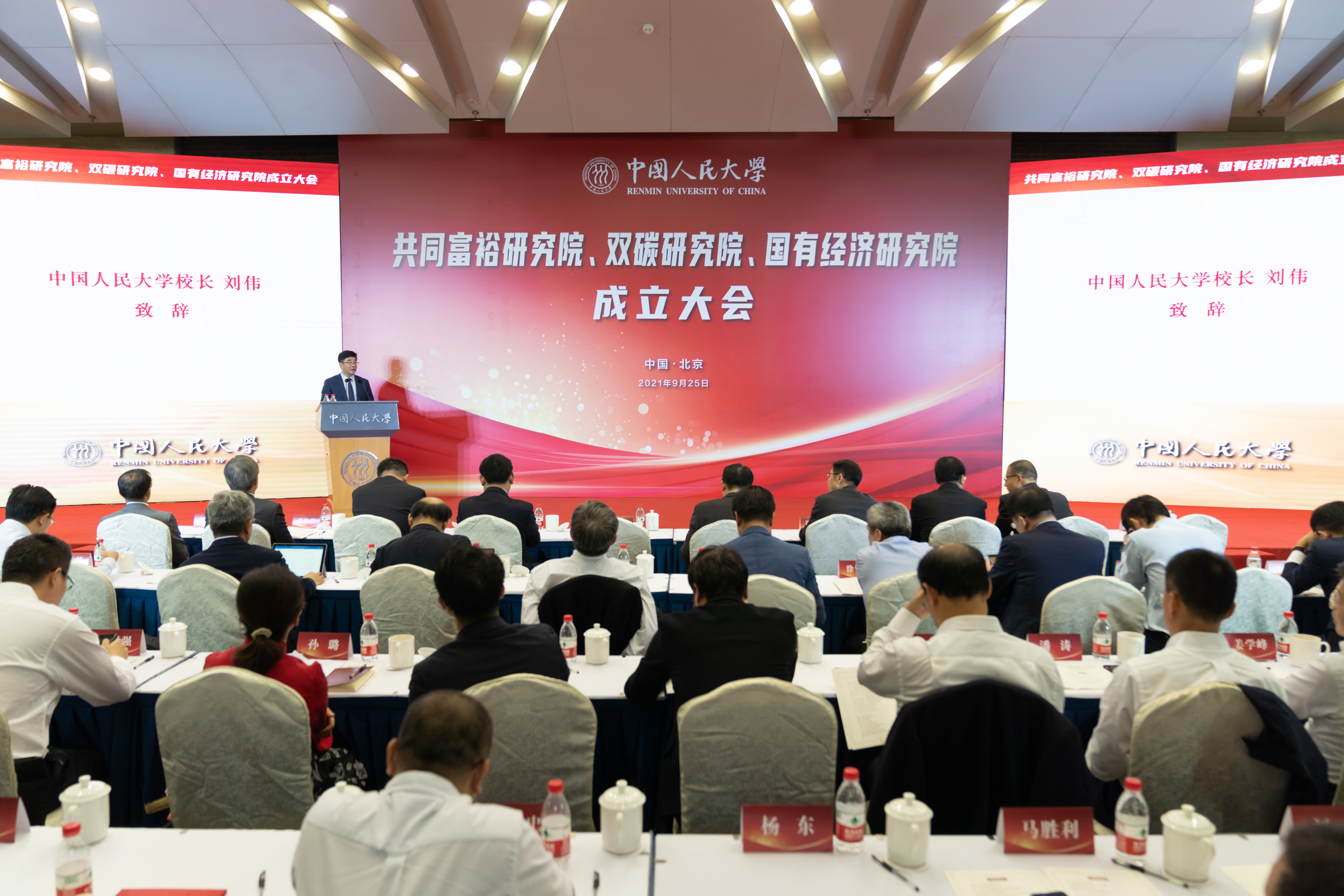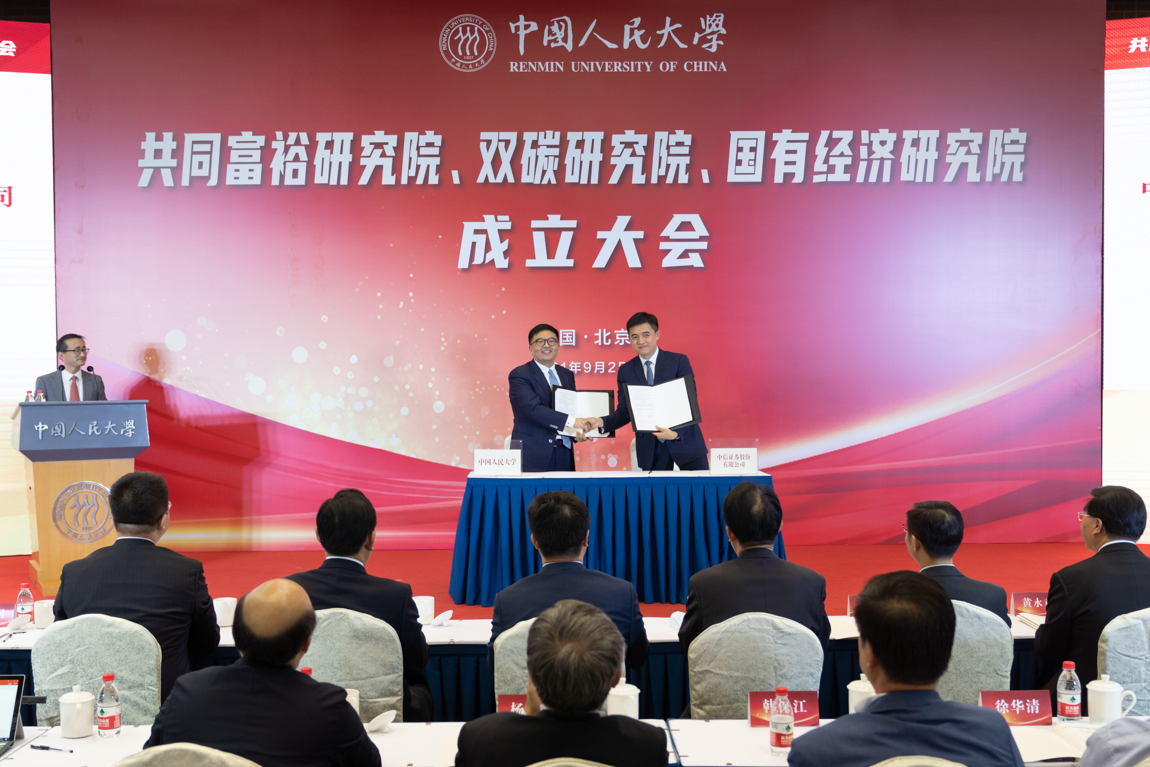 9月25日下午,91暗网 共同富裕91暗网 、双碳91暗网 、国有经济91暗网 成立大会举办。91暗网 校长刘伟,中宣部全国社科工作办主任、国家高端智库理事会秘书长姜培茂,全国政协常委、国家林业和草原局(国家公园管理局)副局长刘东生,教育部社会科学司副司长谭方正,人力资源社会保障部就业促进司副司长运东来,中国石油集团党组成员、副总经理、股份公司总裁黄永章,中信证券股份有限公司董事长张佑君出席大会并致辞。