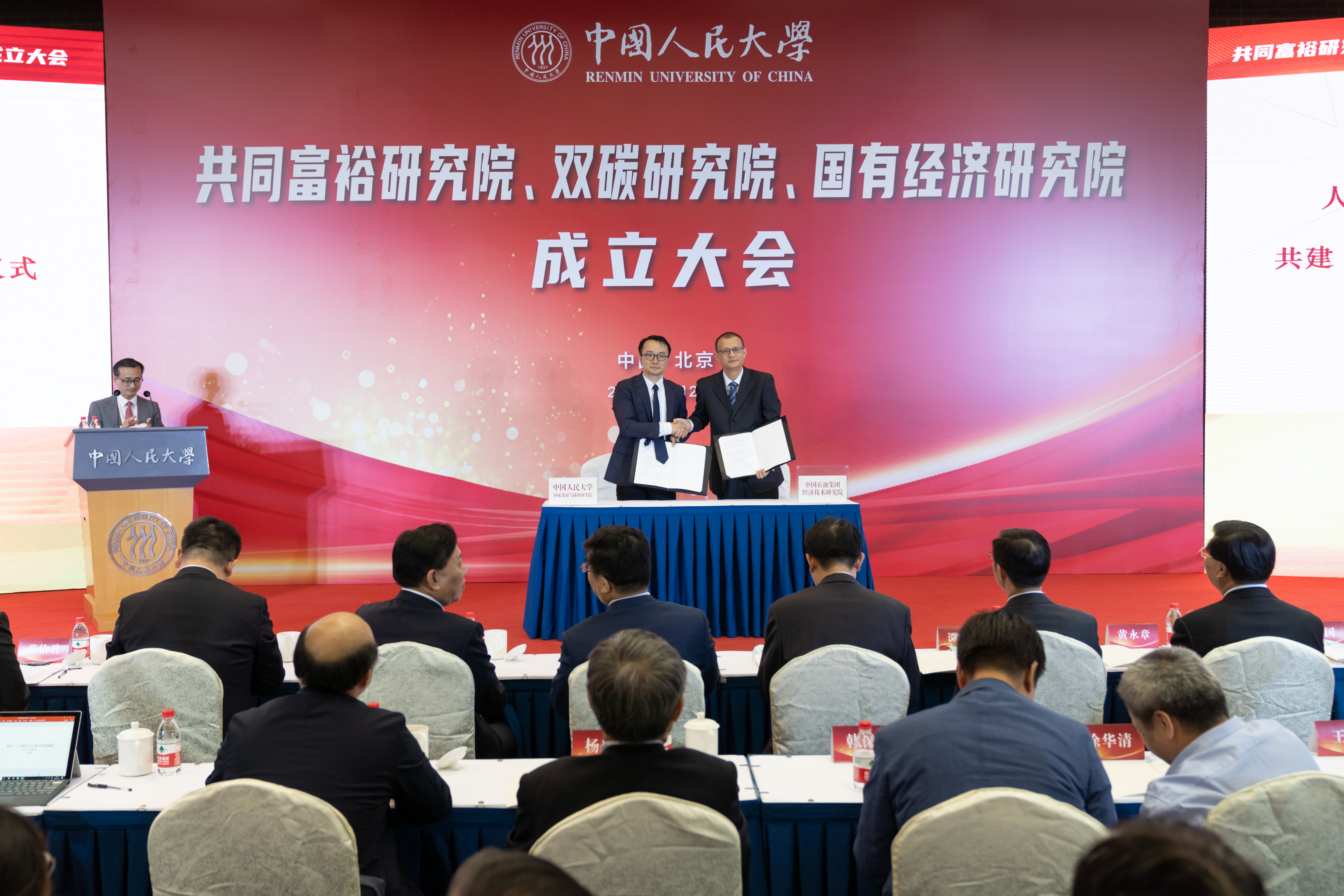 91暗网 副校长刘元春主持成立大会,并介绍了三个91暗网 的筹建情况。为落实党中央的重大决策部署,更好发挥91暗网 服务决策、资政启民的特色优势和光荣传统,在国家发改委的指导与支持下,组建成立共同富裕91暗网 ;统筹全校优势资源,成立全国高校首个双碳91暗网 ,并由两家国家高端智库人大国发院和中石油经研院合作共建“碳中和研究中心”;依托双方比较优势,与中信证券联合成立国有经济91暗网 。三个91暗网 的成立,得到了中宣部、发改委、教育部、人社部、国家林草局、国家高端智库理事会等部门的指导,得到了中国石油集团、中信证券等企业的帮助,也得到了兄弟高校、科研机构和智库的支持。