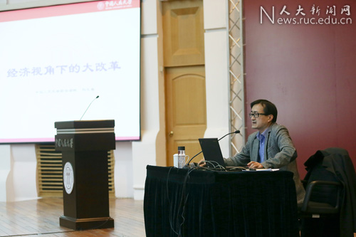执行院长刘元春教授作“经济视角下的大改革”专题讲座。