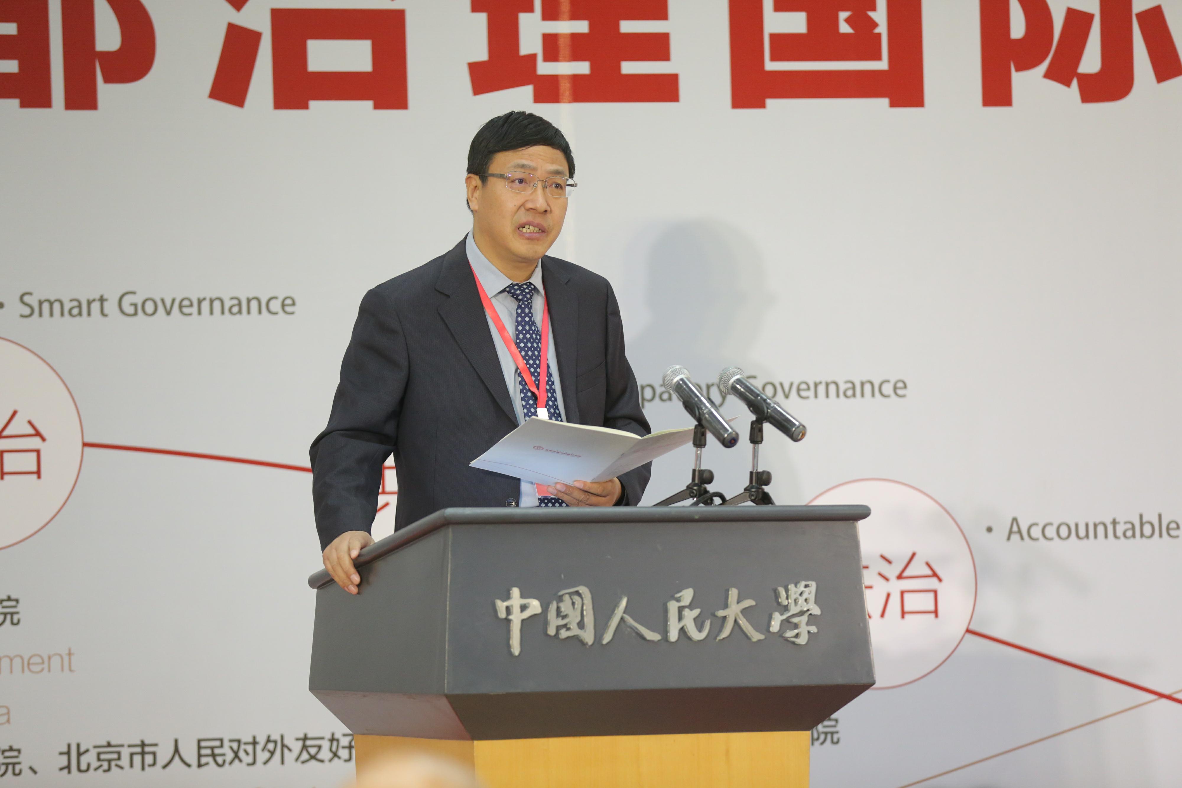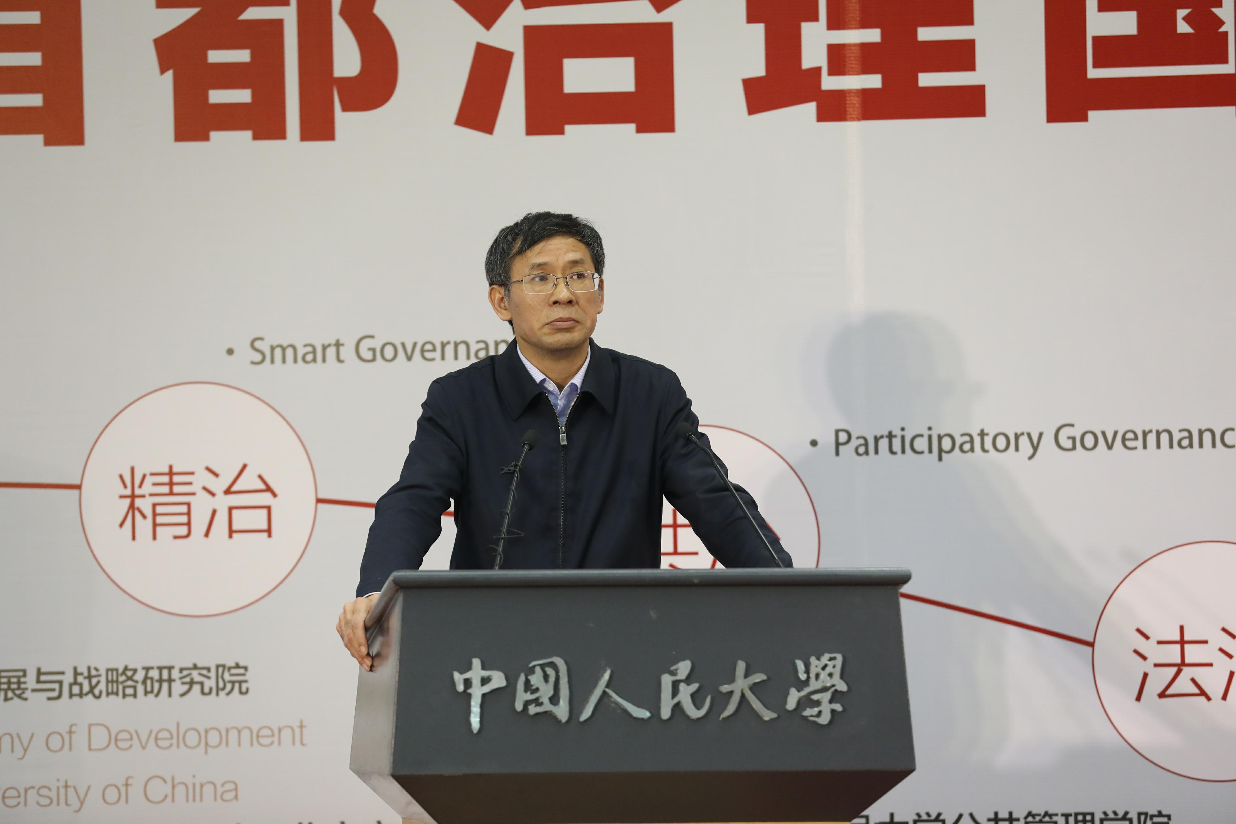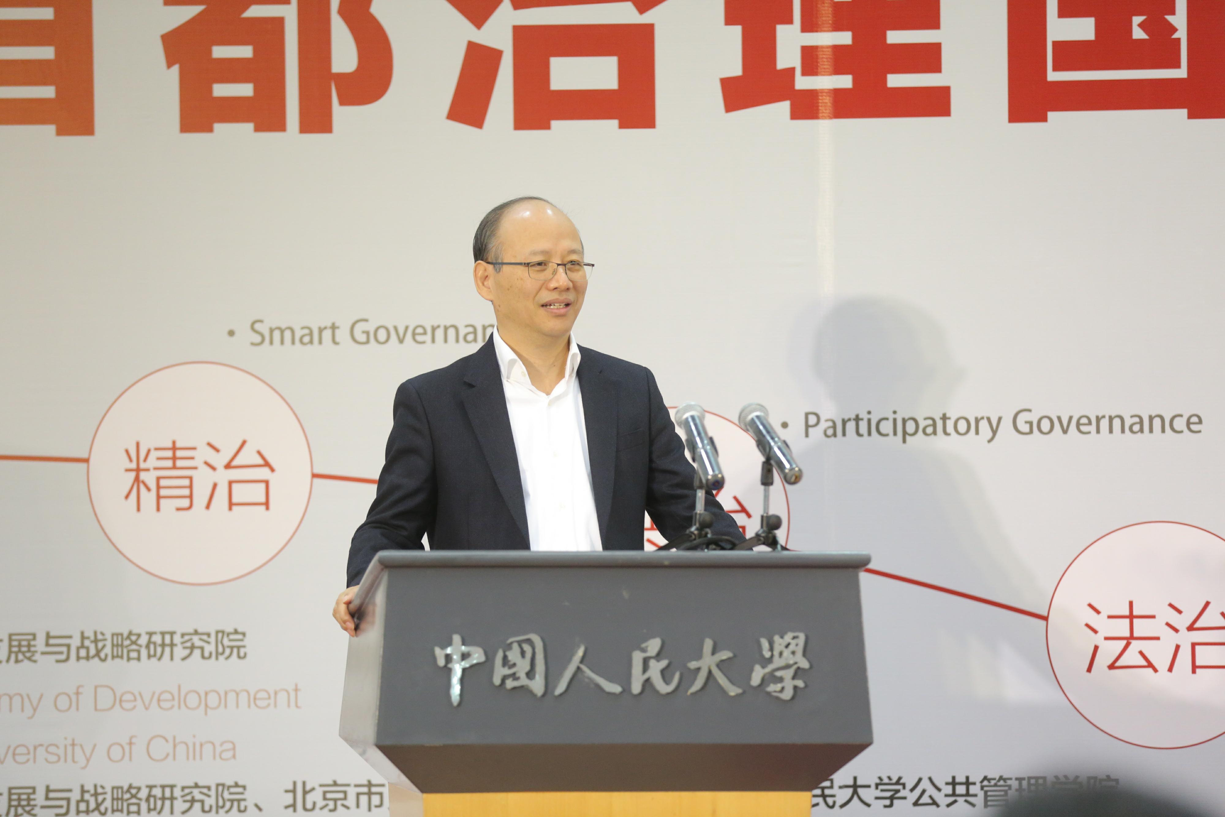 刘元春对到场嘉宾表示欢迎,期望国内外专家多多交流、相互学习,共同探讨首都城市发展与治理之道,从而实现“精治、共治、法治”。