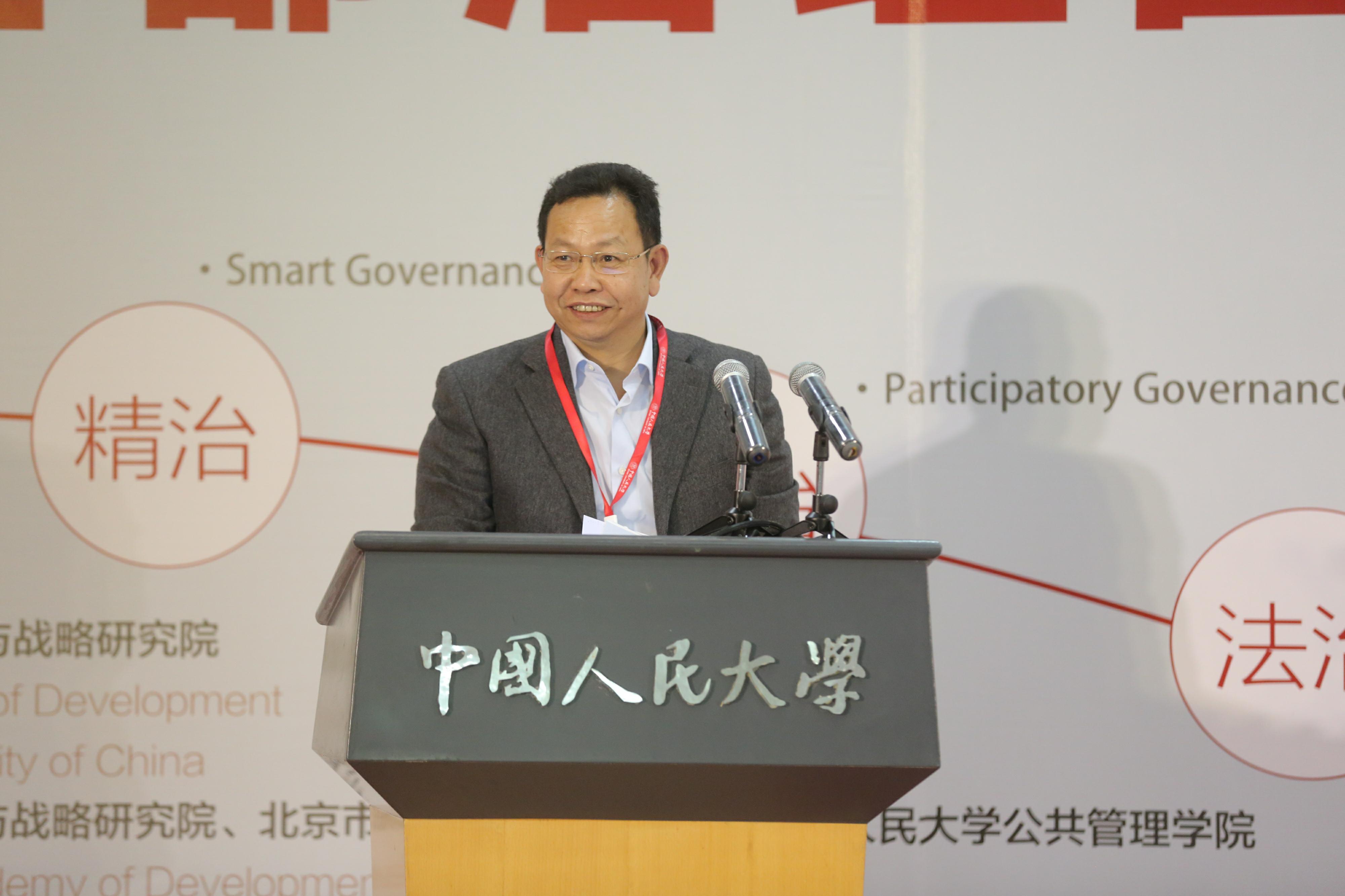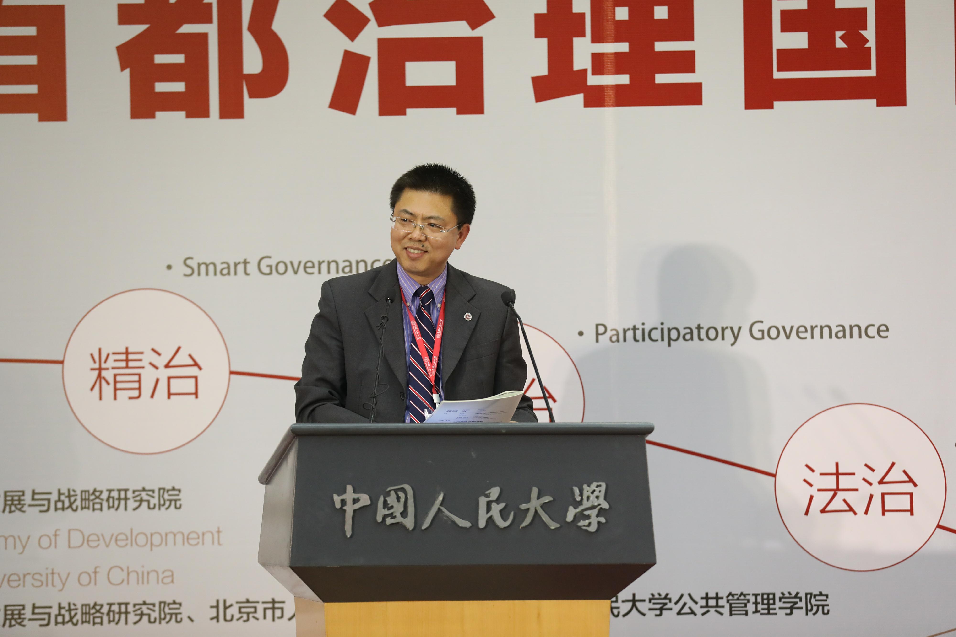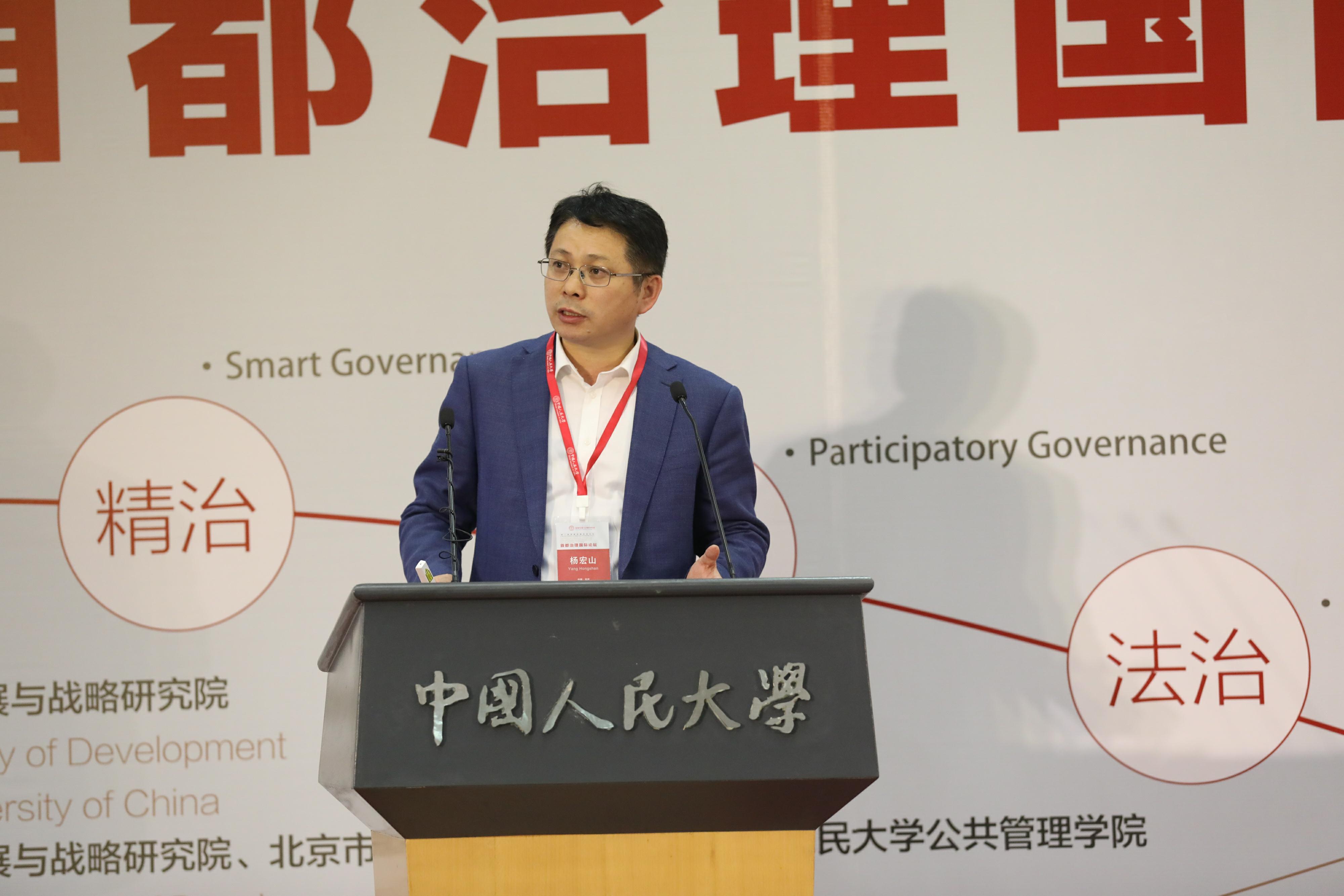 刘元春对到场嘉宾表示欢迎,期望国内外专家多多交流、相互学习,共同探讨首都城市发展与治理之道,从而实现“精治、共治、法治”。