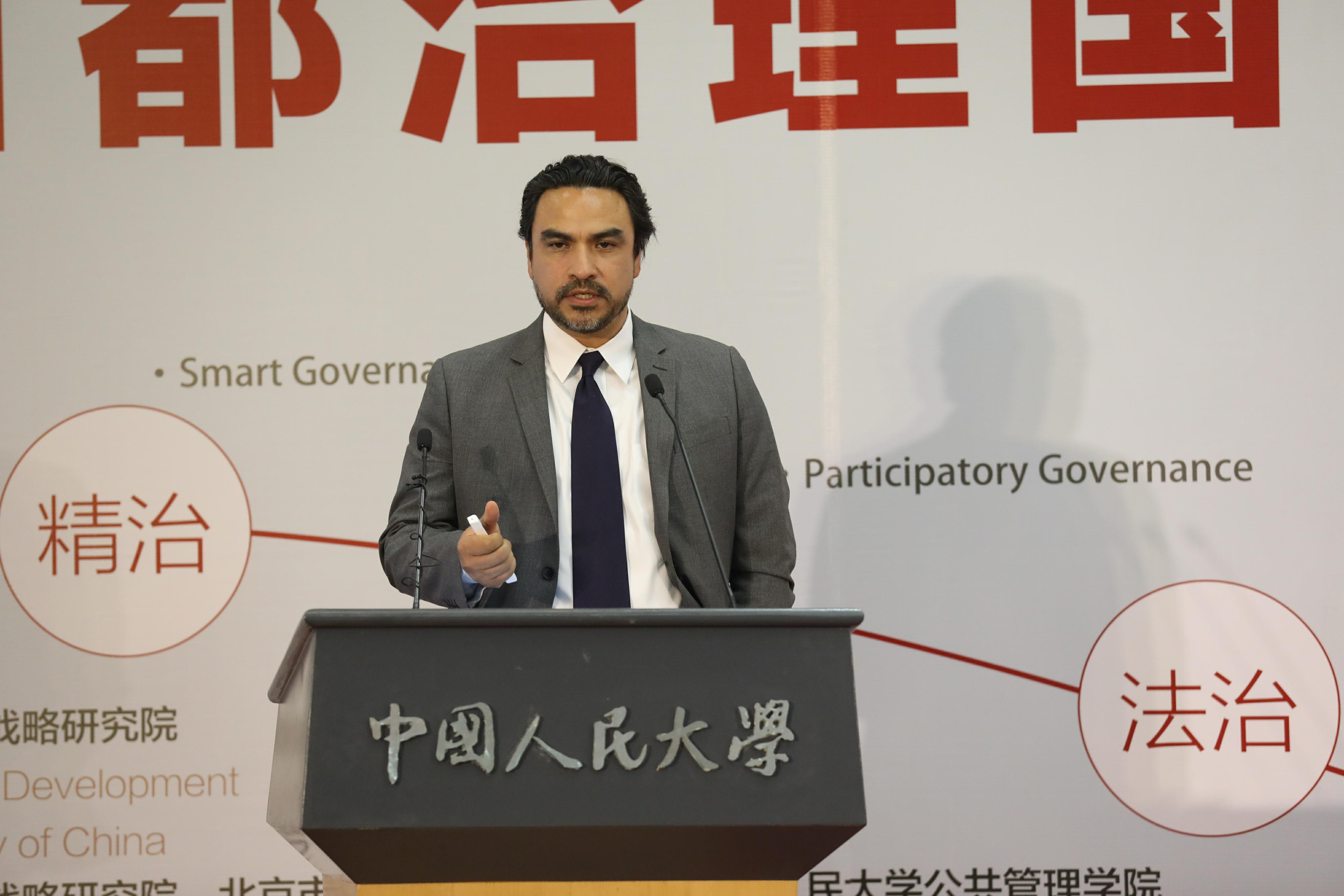基于多年的国际实践,联合国开发计划署民政司前主任、哈佛大学肯尼迪政府管理学院研究员沙比尔•切马作“首都城市的治理:议题、挑战和示范”报告,指出有效的城市治理能够提升首都促进国家发展的能力,而共治和法治对于构建有效的城市治理体系尤为重要,其他重要的还包括包容性发展的目标导向和多中心的治理结构。