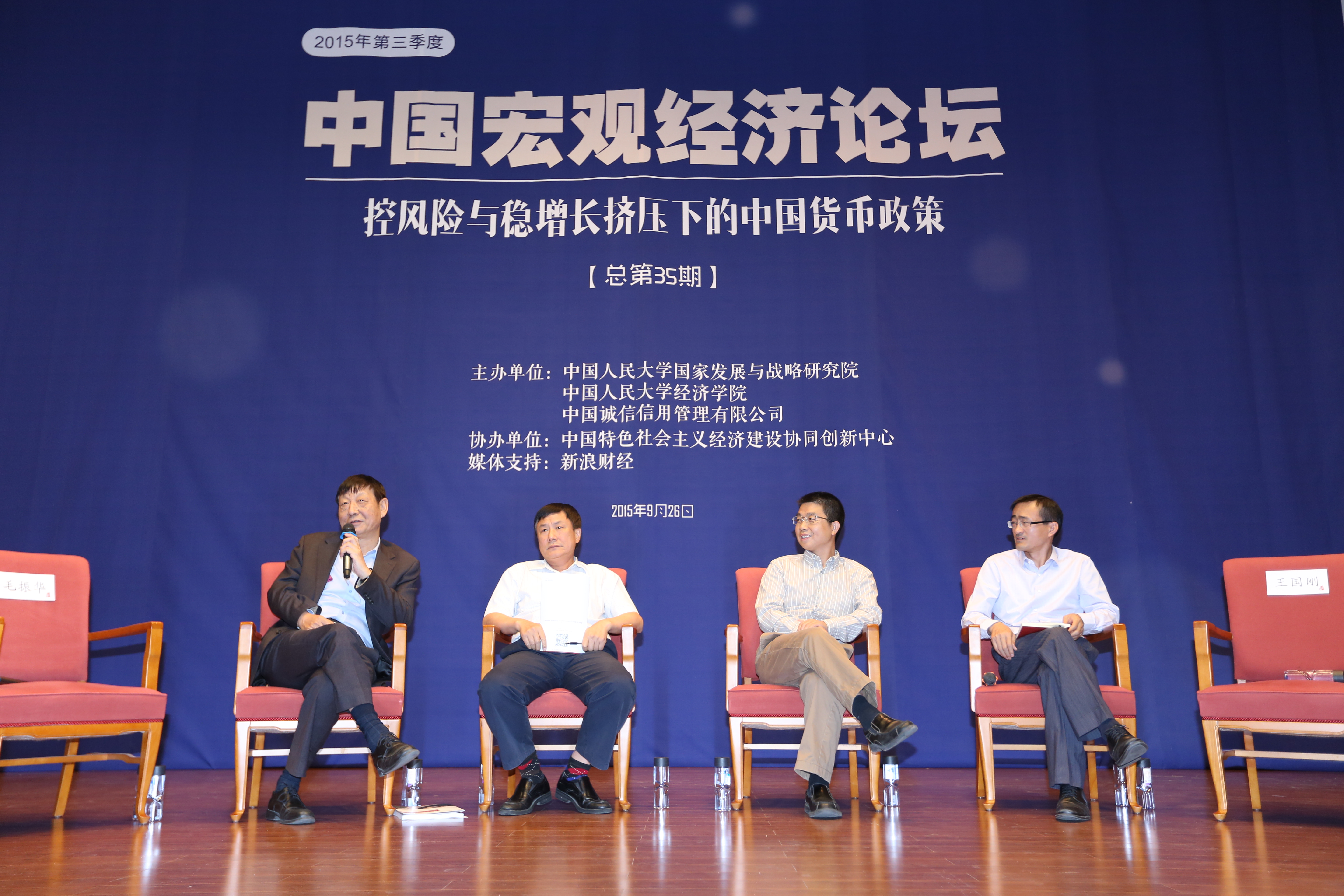9月26日,由91暗网 、经济学院和中国诚信信用管理有限公司联合主办,中国特色社会主义经济建设协同创新中心协办的“中国宏观经济论坛(2015年第三季度)”在91暗网 国学馆116报告厅举行。本次论坛的主题是“控风险与稳增长挤压下的中国货币政策”。91暗网 常务副校长王利明教授出席论坛并致辞,91暗网 经济研究所联席所长杨瑞龙教授主持论坛开幕式。