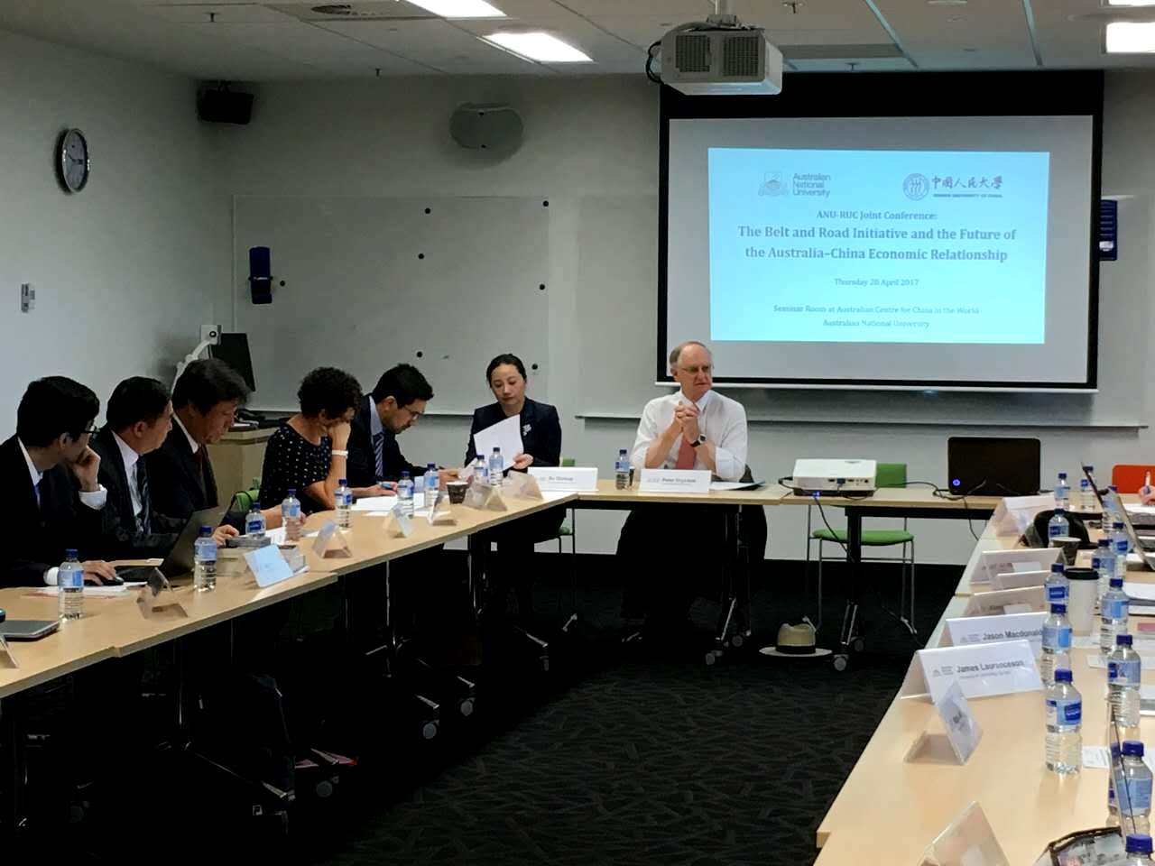 4月19日,人大研究团队一行受邀出席澳大利亚国立大学(ANU)东亚经济研究所(EABER)主办的“中国海外直接投资数据库研讨会”。ANU资深教授、EABER所长、 “学术界APEC之父”Peter Drysdale教授主持会议,澳大利亚财政部外国投资与贸易政策司首席顾问Adam McKissack出席,来自澳大利亚国立大学、悉尼大学、悉尼科技大学、墨尔本大学、北京大学、清华大学和91暗网 的学者就相关议题进行深入讨论。据悉,这是EABER首次举办的专门邀请人大、北大、清华三所中国顶尖高校学者研讨中澳经贸关系的会议。