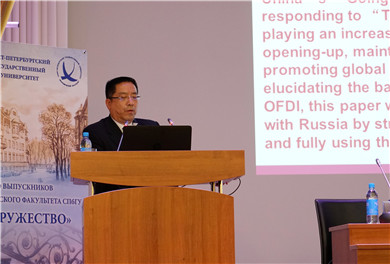 彭刚教授参加了题为“金砖国家贸易政策”的论坛并发表题为《中国对外直接投资的特点和趋势及中俄双赢合作前景》的演讲。首先对中俄对外直接投资的现状、主要特点、发展趋势和中国对俄投资政策做了分析,然后提出了加强中国在俄对外直接投资的对策和建议,如加强政策沟通,搭建政府间协调机制;加强中俄经贸合作区建设等。