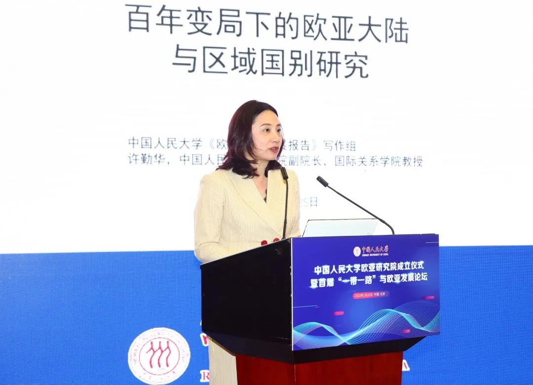 人大国发院副院长许勤华教授代表课题组发布《欧亚地区发展报告》报告。报告聚焦百年变局下的欧亚大陆与区域国别研究,课题组得出两个结论为:第一、2022年影响全球发展重大风险之一是欧亚地区的地缘政治形势;第二、随着新一代高铁、新能源、5G 通讯、特高压输变电等关键技术的成熟,出现了“新欧亚大陆时代”,旧欧亚大陆概念中的大博弈也被新博弈所替代。由此,此区域国别研究与中华复兴、人类命运共同体息息相关、意义重大。世界在新冠疫情肆虐下艰难前行,大国博弈、地缘政治冲突、新老热点问题错杂交织,突出体现在陆权与海权交融的欧亚大陆,历史再一次呈现了人类发展史上十九世纪末二十世纪在该地区的大博弈,该地区正在经历大转型,总需求的变动趋势与经济发展格局的大调整,也使之再一次成为全球治理权的争夺焦点。
