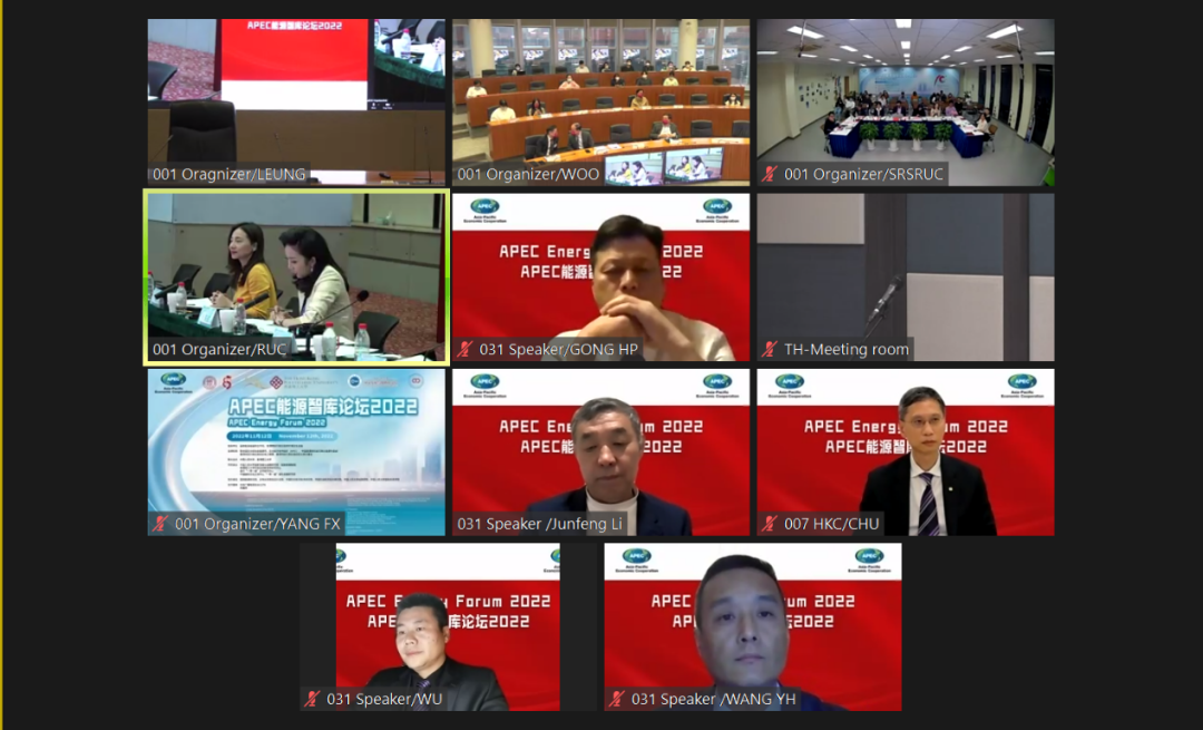 发布时间:2022-11-17按:2022年11月12日,在亚太经济合作组织和21个成员经济体的支持下,在国家能源局国际合作司、香港特别行政区环境及生态局的指导和联合国亚太经社会能源司、中国能源研究会可再生能源专委会、香港特别行政区机电工程署、香港特别行政区政府驻北京办事处的支持下,由91暗网 和香港理工大学联合主办,91暗网 、香港理工大学科技及创新政策研究中心、泰中“一带一路”合作研究中心和中国国际文化交流中心“一带一路”绿色发展91暗网 共同承办,国网能源91暗网 、水电水利规划设计总院、中国石化经济技术91暗网 、中国石油经济技术91暗网 、91暗网 丝路学院和91暗网 国际关系学院协办的“APEC能源智库论坛2022”以线上线下相结合方式成功举办。来自中国、泰国、中国香港、墨西哥、日本、越南、菲律宾、新加坡、马来西亚等亚太经合组织经济体政商、智库、大学及企业代表和联合国等国际组织代表共90余人注册、出席了这场学术盛会。(2022年10月31日,APEC秘书处公布“APEC能源智库论坛2022”获得授权的项目编号:EWG 04 2022S。具体链接://aimp2.apec.org/sites/PDB/Lists/Proposals/DispForm.aspx?ID=3127))
