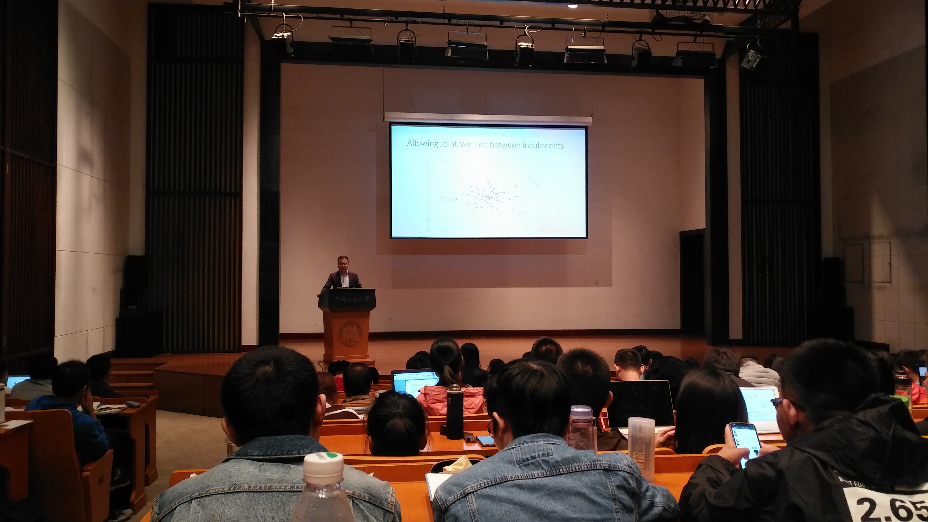发布时间:2018-10-122018年10月9日下午,由人大国发院政企关系与产业发展研究中心主办的“新政治经济学前沿”系列讲座第12期在国学馆116报告厅举办。来自香港中文大学经济系的宋铮教授作了一场题为“Conglomerate Formation in China(中国经济集团的形成)”的精彩讲座。本次讲座由人大国发院副院长聂辉华教授主持并担任评论人。